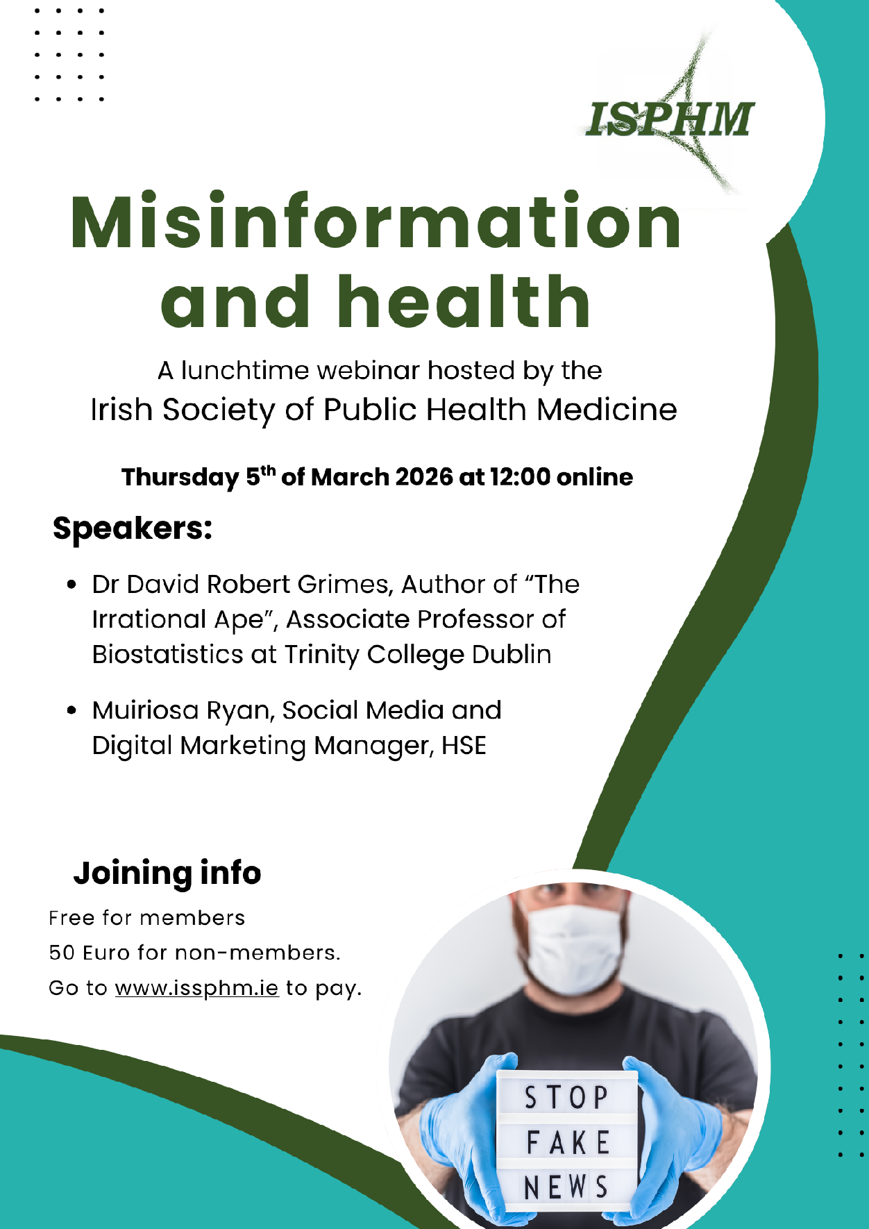 The first webinar in our 2026 lunchtime series on the topic of "Misinformation and Health" will take place on the 5th of March at 12pm.
